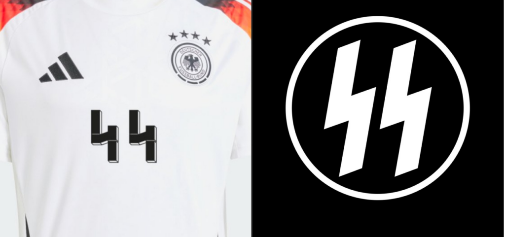 Adidas, futbolseverlerin Alman milli formasına ‘44’ numarasını yazdırmasını, formanın, İkinci Dünya Savaşı sırasında Nazi SS birimleri tarafından kullanılan sembole benzerliği nedeniyle yasakladı. Adolf Hitler’in paramiliter örgütü olan Schutzstaffel (SS), Avrupa çapında Yahudi halkına yönelik soykırımını gerçekleştirmekle görevlendirilmişti. Formalarla ilgili endişeler ilk olarak tarihçi Michael König tarafından dile getirilmiş ve formanın tasarımının “oldukça şüpheli” olduğu söylenmişti.