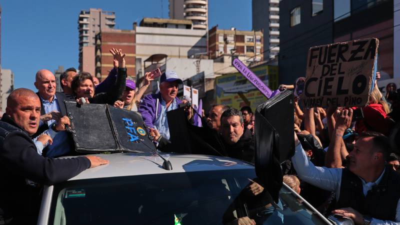 Başkent Buenos Aires’e bağlı Lomas de Zamora bölgesinde üstü açık bir araçtayken protestocu bir grubun taşlı saldırısına uğrayan Milei, bir otelde basına konuştu.