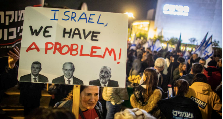 Ocak ayından bu yana sokaklara dökülen insanların çoğu, hükümetin devlet ile vatandaşları arasındaki en temel anlaşmayı ihlal etme yoluna girdiği ve ülkelerinin bir demokrasi olmaktan çıkabileceği inancıyla bunu yaptı. Ancak burada daha derin bir şeyi gözlemliyoruz. Bu sadece İsrail demokrasisinin, ne kadar kusurlu olursa olsun, olası çöküşü değildir. İsrail’in temel kimliğinin, Yahudi ve demokratik bir devlet kimliğinin çözülmesidir.