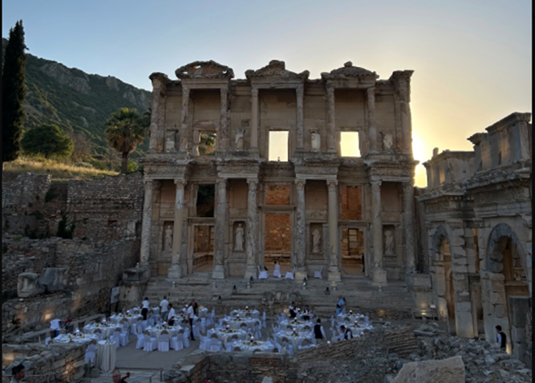 2017’den bu yana şirket gemi yolcularını Efes Antik Kenti’ne götürüp, kentte ayakta kalan en görkemli yapılardan Celsus Kütüphanesi’nin önünde akşam yemeğinde ‘ağırlıyor.’