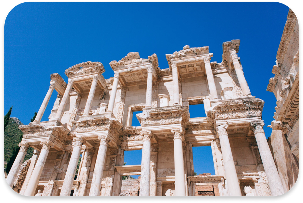 Efes’in en ünlü ve görkemli yapılarından biri olan kütüphane binası, M.S 117 yılında senatör Gaius Julius Celsus Plemaeanus için vefatından sonra oğlu Galius Julius Aquila tarafından yaptırıldı. Celsus’un mezarı da binanın zemin katın altındaki mezar odasında bulunuyor. Parşomenlerin saklandığı bölümlerin yer aldığı kütüphanenin girişinde Sophia (irfan), Episteme (bilgi), Ennoia (zeka) ve Arete (erdem) heykelleri yer almaktaydı.