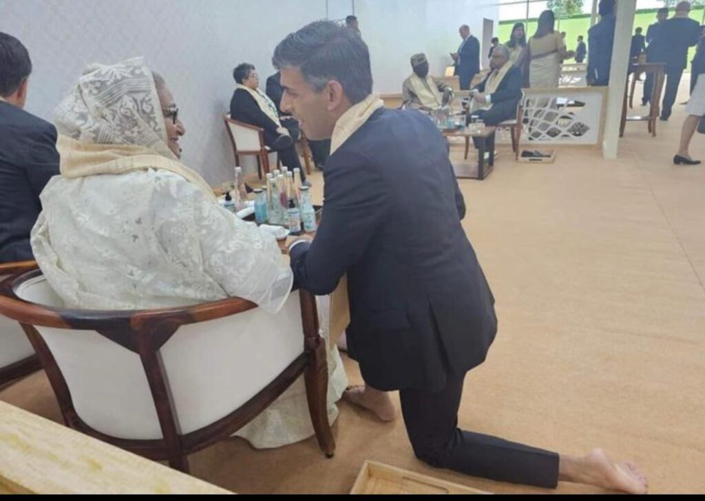İngiltere Başbakanı Rishi Sunak, G-20 zirvesinde yalın ayakla girdiği Gandhi Anıt mezarında Bangladeş Başbakanı Sheikh Hasina ile diz çökerek konuştu. Fotoğraf sosyal medyada viral oldu.