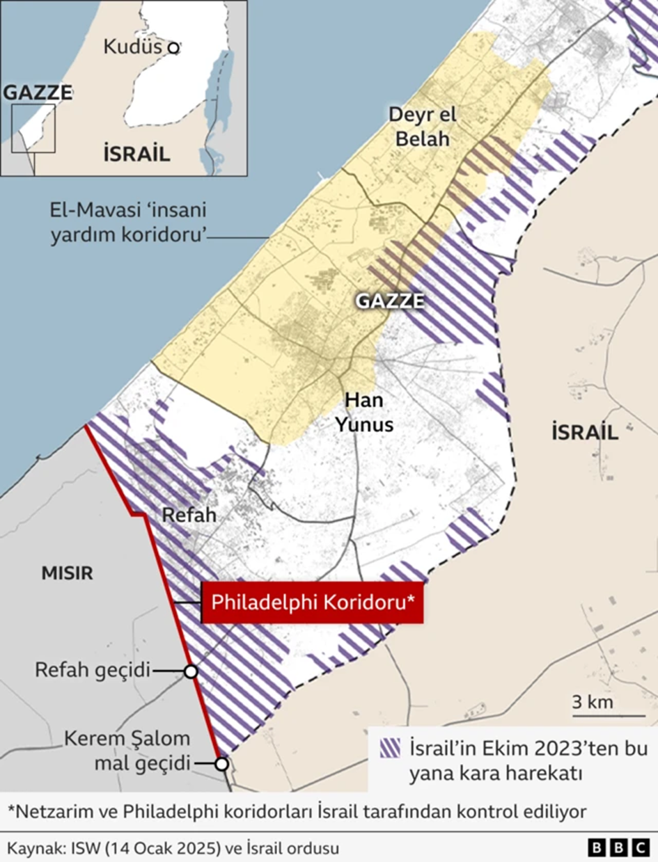 BBC’nin edindiği bilgilere göre, ilk aşamaya dahil olan sivillerin kuzeydeki evlerine dönüşünde güvenliği silahsız Hamas üyeleri sağlayacak.