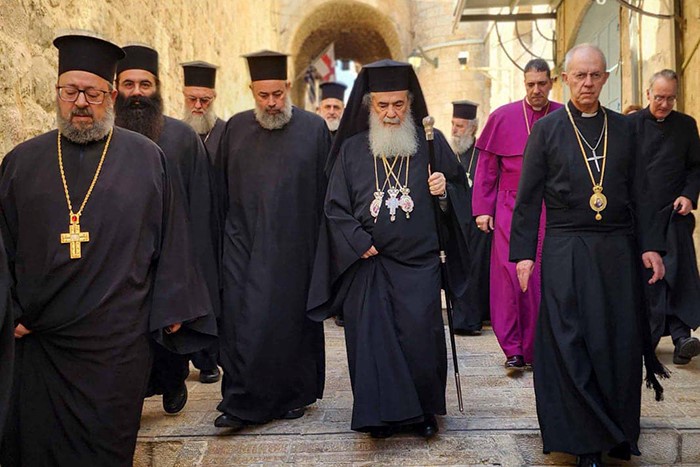 İngiliz devlet kilisesi olan Anglikan Kilisesi’nin başındaki Canterbury Başpiskoposu Justin Welby, Kudüs’e gitti, İsrail’in kendini savunma hakkını şerhsiz destek veren resmi İngiliz politikasından ayrılarak Gazze'de derhal ateşkes sağlanması ve İsrail'in sivilleri bombalamasına son verilmesi için acil bir çağrıda bulundu. Çağrıya Kudüs Rum Ortodoks Patriği 111. Theophilos, Latin Patriği Fuad Twai, Ermeni ve Kıpti patrikleri de destek verdi.