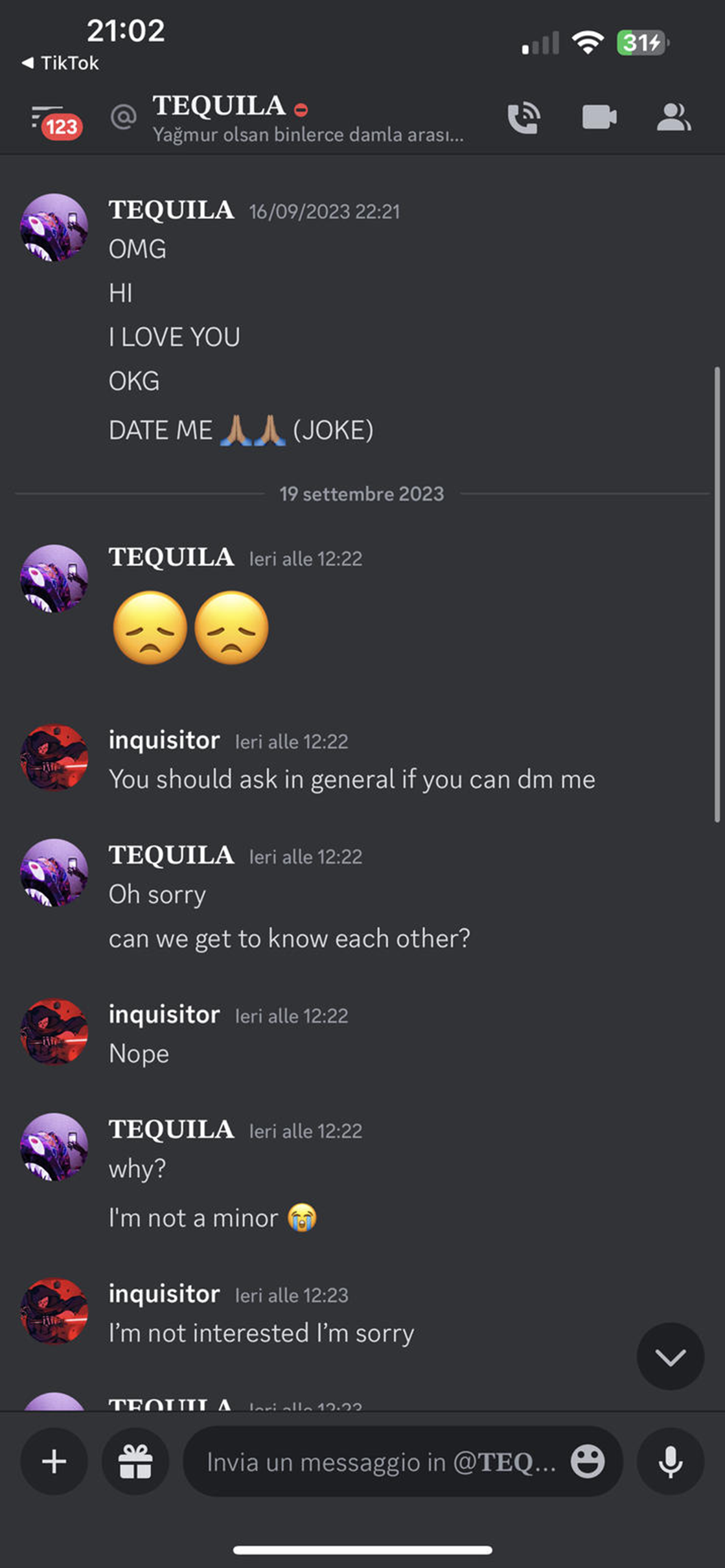 İlginç bir nokta da Vincent’in Dilan’la yazıştığı dönemde bir sevgilisinin (Helachan) olması. Yukarıdaki resimde Vincent’e sarılmış olan Halechan’ın Tiktok sayfası da var. Ancak Vincent’in sevgilisi olayların büyük oranda dışında kalmış ve sosyal medyada Dilan’a dair bir öfke belirtisi göstermemiş. Sadece Vincent’in intiharı sonrasında bazı paylaşımları var. Bu paylaşımlar da suçlama değil yas içerikli. Helachan, İtalyan.