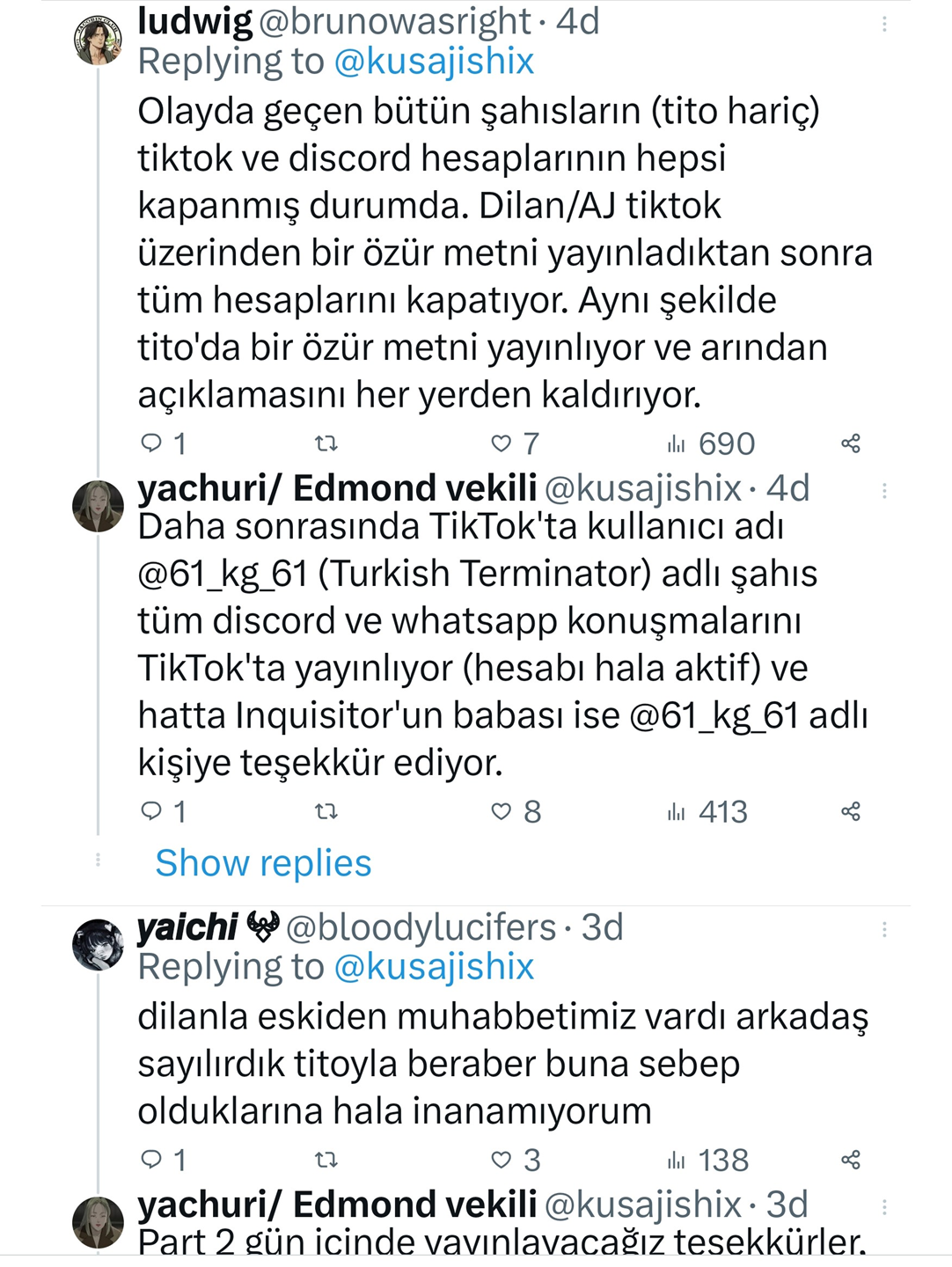 Bu arada, gerçekleşen bu olaylara dair tartışmalar Youtube, Tiktok ve Twitter üstünden, ağırlıklı olarak İngilizce ve İtalyanca olarak gelişirken, konuya dair az da olsa bazı Türkçe twitler de atıldı.