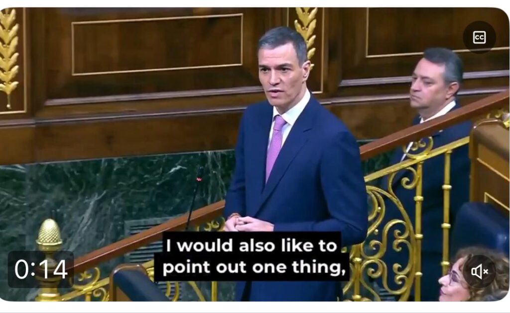 İspanyol parlamentosunda Gazze’ye rağmen İsrail ile ticari bağlarını sürdürmekle suçlanan İspanya Başbakanı Pedro Sacnhez: “Soykırımcı bir devletle iş yapmayız”