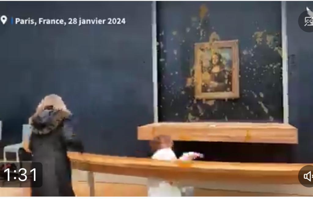 İki çevre aktivisti Paris'teki Louvre Müzesi'nde sergilenen Mona Lisa tablosunu koruyan zırhlı cama çorba attı. Aktivistler bu eylemi, "sağlıklı ve sürdürülebilir gıda hakkı" için yaptıklarını açıkladı.
