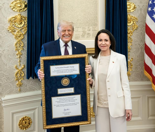 Trump’ın Nobel yüzünden Venezuela lideri olmasını veto etttiği iddia edilen Venezuelalı muhalif lider Machado, Trump’ın favori kanalı Fox News’a çıkıp “Nobel Barış Ödülü’nü ona vermek, onunla paylaşmak istiyorum” demişti.