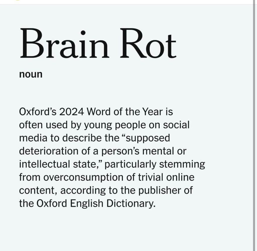 Oxford University Press tarafından hazırlanan 6 kelimelik aday listesine 37 bin kişi oy kullandı. Ve kazanan “brain rot” oldu.