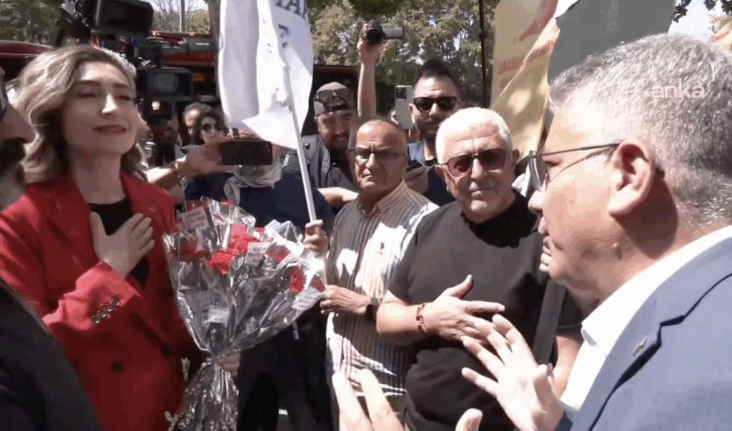 Pir Sultan Abdal Kültür Derneği Başkanı Cuma Erçe, Ersin’e “İllaki atılan gül bizi yaralar, sıkıntı burada zaten. Ha taş ile gelmişsiniz, ha gül ile gelmişsiniz…” dedi. Ersin ise “Gül sizi yaralamasın, gönülden gelendir bu. Baştacısınız, bu kurum hepinizin kurumu” diye konuştu.