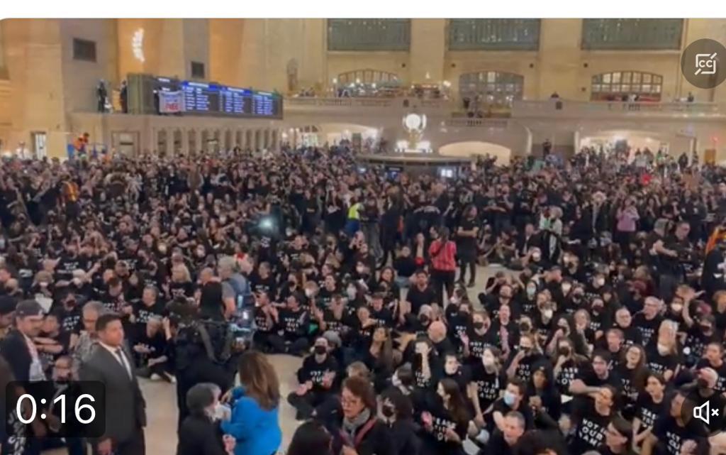 Amerikalı Yahudiler Temsilciler Meclisi’nden sonra New York’taki büyük garda ateşkes için oturma eylemi yaptı