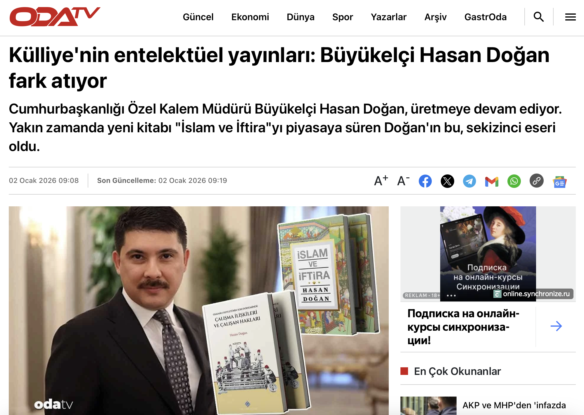 Ancak Oda TV, aradan 3 ay geçtikten sonra bugün (2 Ocak 2026) Hasan Doğan’ın kitabıyla ilgili yeniden bir haber yaptı.