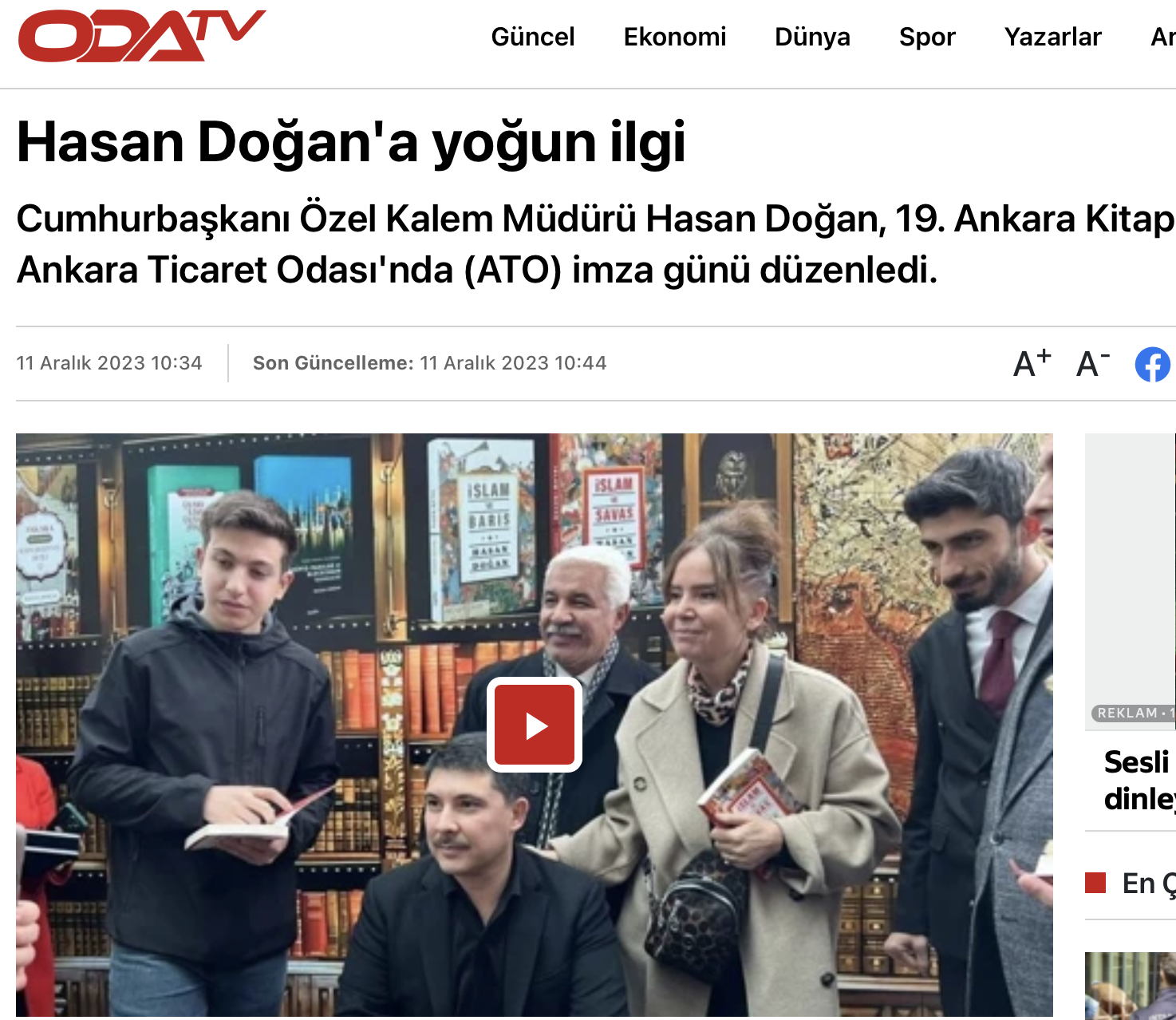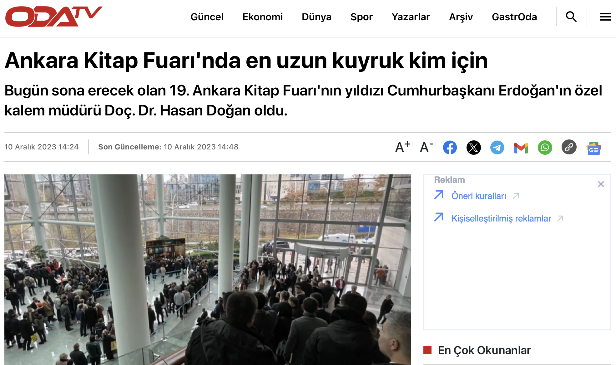 Oda TV, 2024’teki Ankara kitap fuarı imza gününü “Hasan Doğan’a yoğun ilgi” başlığıyla verdi.