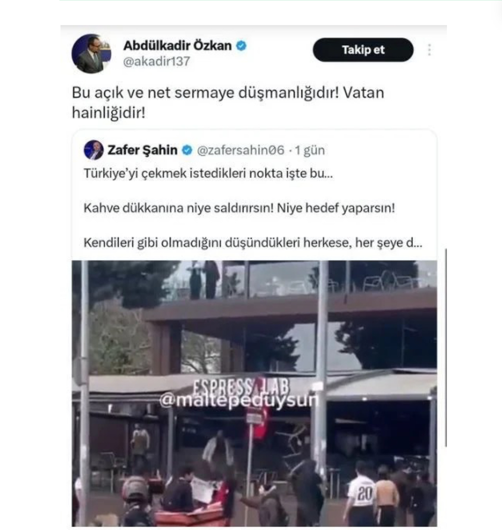 Konserin yapımcısı olan Dolmabahçe A.Ş. bünyesinde faaliyet gösteren şirketin sahibi Abdülkadir Özkan, bir EspressoLab şubesinde çıkan kavganın videosunu X hesabından alıntılayarak, “Bu açık ve net sermaye düşmanlığıdır, vatan hainliğidir” yazmıştı.