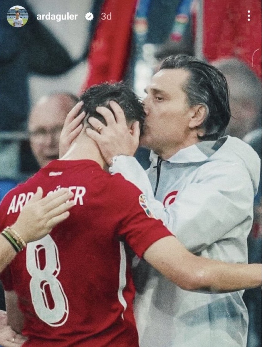 Portekiz maçında ilk 11’de yer almadığı için eleştirilen Arda Güler, maçtan sonra teknik direktör Montella’nın kendisini alnından öptüğü fotoğrafı Instagram hesabından paylaşmıştı: