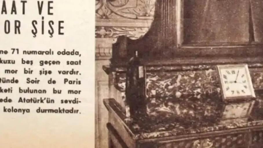 İddiaların merkezinde yıllar önce bir dergide çıkmış fotoğrafta Atatürk’ün vefat ettiği Dolmabahçe’deki odada 9’u beş geçe’de dondurulmuş meşhur saatin yanında duran parfüm şişesi var.