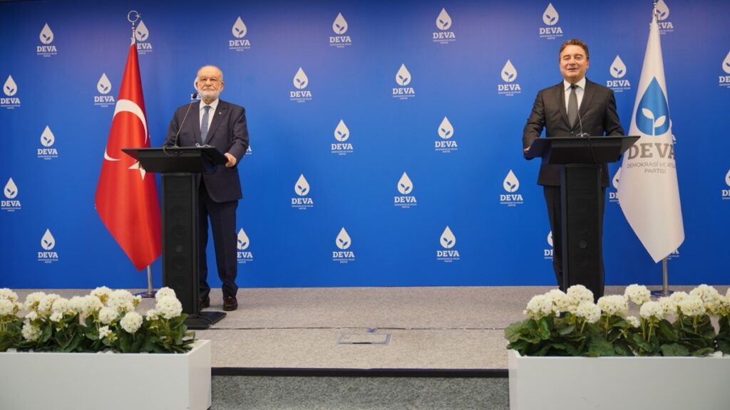 Saadet Partisi Genel Başkanı Temel Karamollaoğlu, DEVA Partisi Genel Başkanı Ali Babacan’ı DEVA Partisi Genel Merkezi’nde ziyaret etti. Karamollaoğlu’nun ziyaretine eşlik eden heyette Saadet Partisi Genel Başkan Yardımcıları Sabri Tekir, Cafer Güneş ve Birol Aydın yer aldı. DEVA Partisi heyetinde ise Genel Sekreter Sadullah Ergin, Teşkilat İşleri Başkanı Nihat Ergün ile Ekonomi ve Finans Politikaları Başkanı İbrahim Çanakçı bulundu.