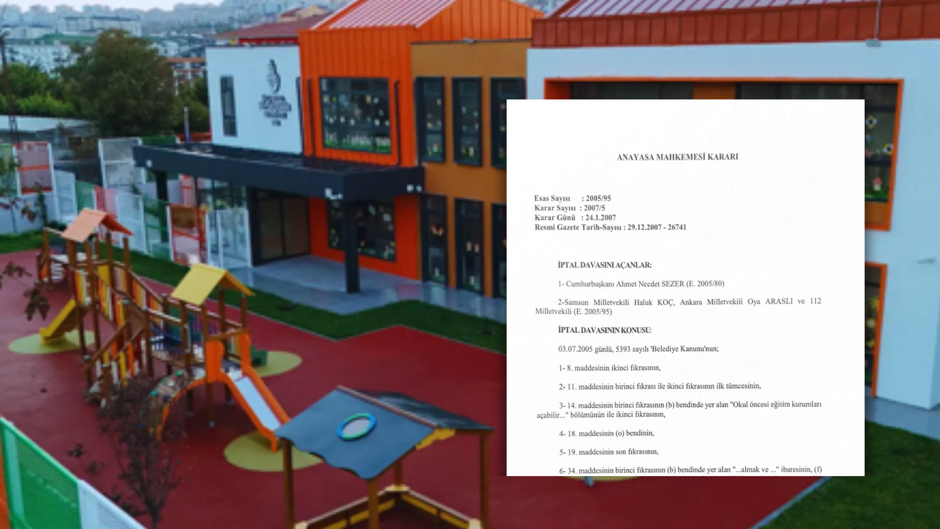 Söz konusu AYM kararının, 2005 yılında CHP Milletvekilleri Haluk Koç, Oya Araslı ve 112 milletvekili ile dönemin Cumhurbaşkanı Ahmet Necdet Sezer’in başvurusuyla, belediyelerin kreş açmasına imkan veren belediye kanununun iptal edilmesi sonucu alındığı ortaya çıktı.