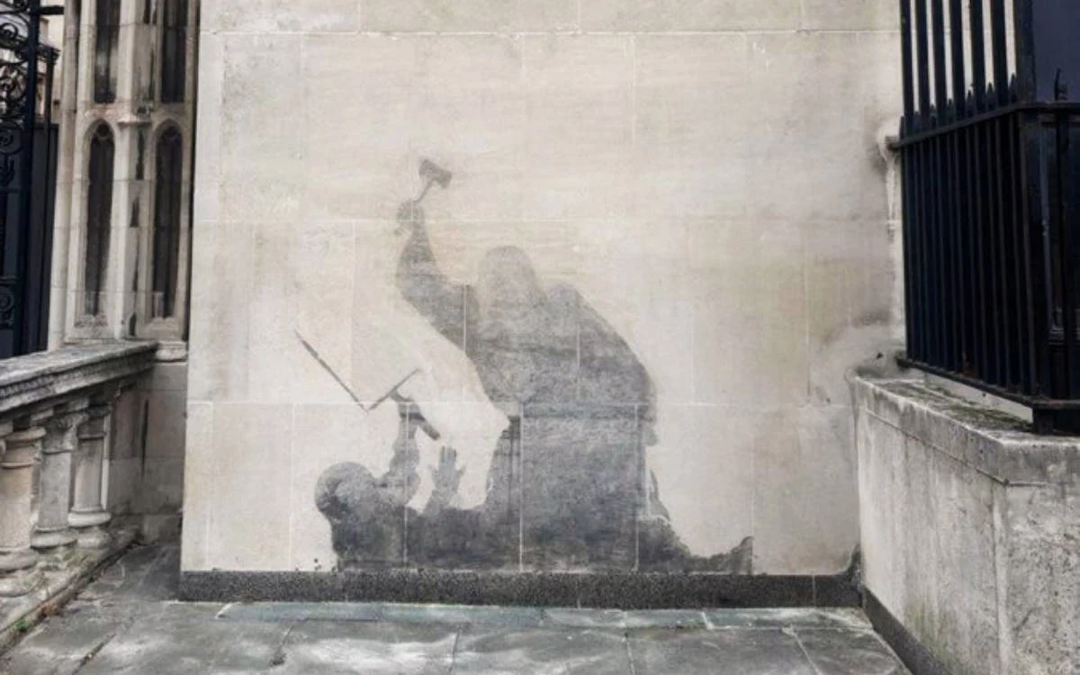 Ünlü gizemli sokak sanatçısı Banksy’nin, bir hakimin protestocuyu tokmakla dövdüğünü tasvir eden eseri Londra’daki Kraliyet Adalet Sarayı’nın dış duvarından kaldırılmak istendi. Polis gözetiminde silinmeye çalışılan resim hala seçilebiliyor.