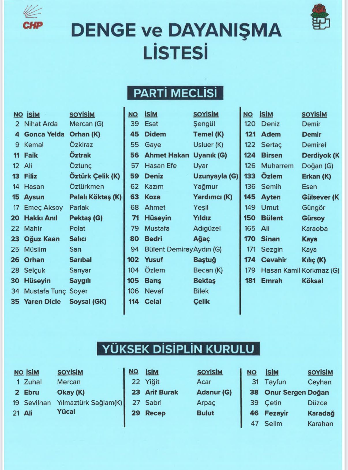 Özel, 2023 kurultayında kendi listesini delerek PM’ye giren 8 isimden 5’ini bu kez kendi listesinden aday gösterdi.