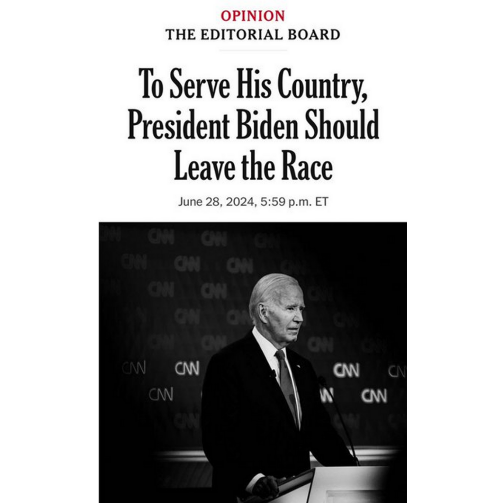 Demokratlar için yalanlarıyla tanımlanan bir adayı yenmenin en açık yolu, Amerikan halkıyla dürüstçe anlaşmaktır: Sayın Biden’ın yarışa devam edemeyeceğini kabul etmek ve Kasım ayında Sayın Trump’ı yenmek için onun yerine geçecek daha yetenekli birini seçmek için bir süreç oluşturmak.