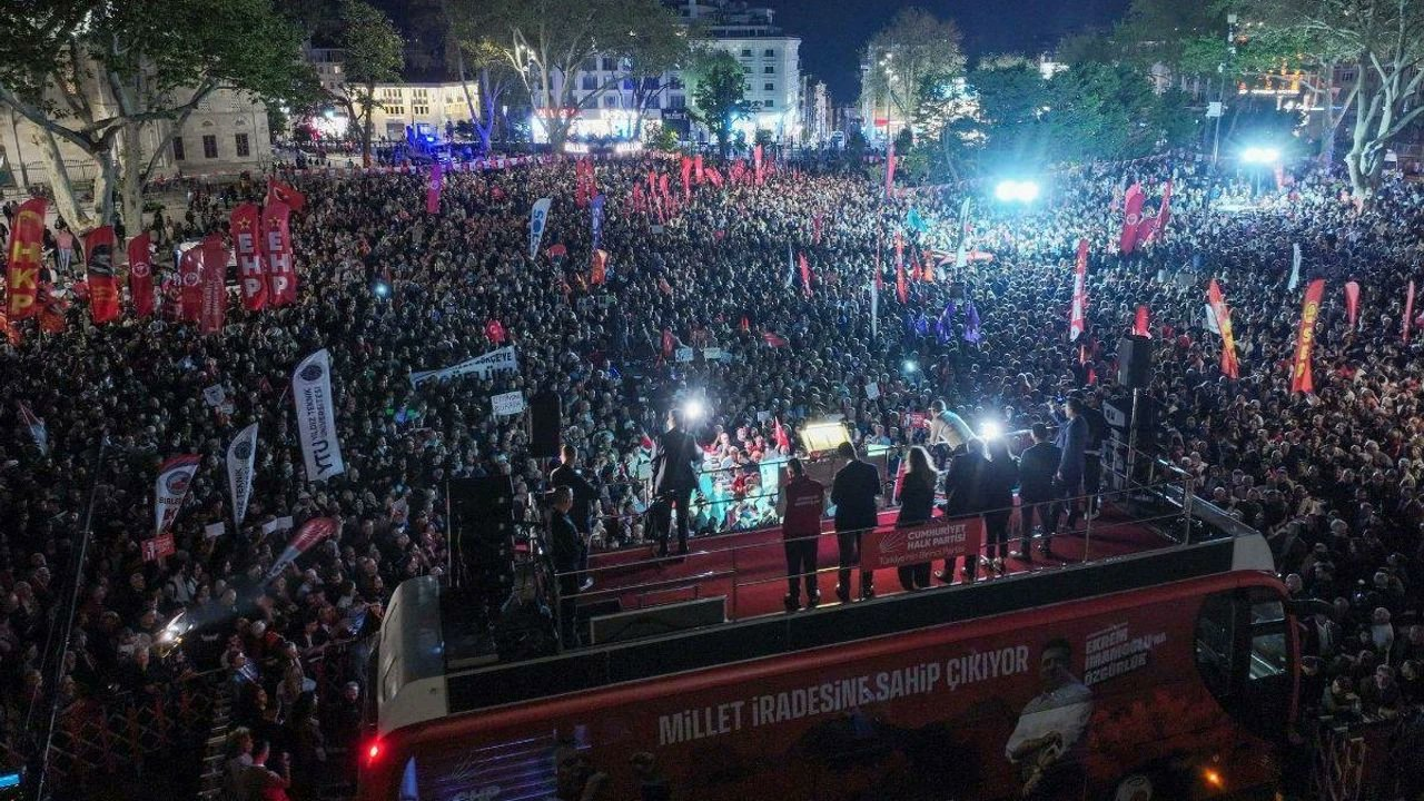Miting sırasında, Silivri’de tutuklu bulunan CHP’nin Cumhurbaşkanı adayı Ekrem İmamoğlu’nun da mitingi cezaevinden takip ettiği belirtildi.