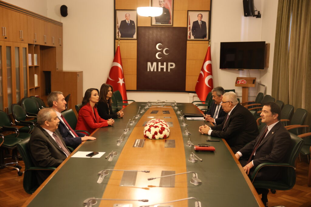 DEM heyeti, saat 11:00’de MHP’yi ziyaret etti. MHP adına genel başkan yardımcıları Semih Yalçın, Feti Yıldız ve İsmail Faruk Aksu’nun bulunduğu görüşme bir saat sürdü.
