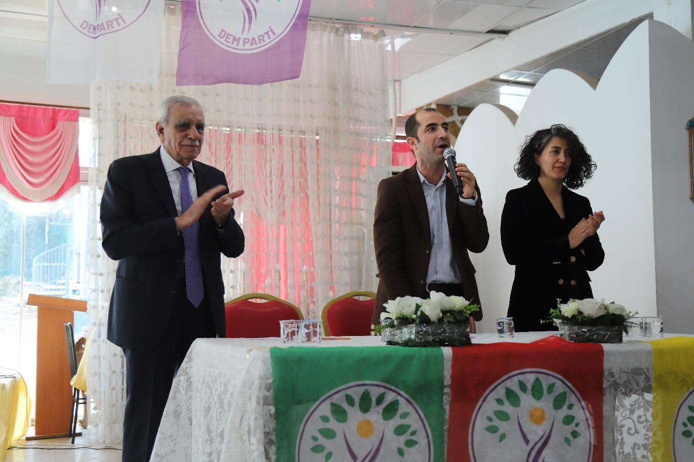 DEM Parti, Mardin Büyükşehir Belediyesi Eş Başkanlığı için Ahmet Türk ve Devrim Demir’i aday göstereceğini açıkladı. Kentte bulunan bir düğün salonunda yapılan açıklamayı Demokratik Bölgeler Partisi (DBP) Eş Genel Başkanı Keskin Bayındır yaptı.