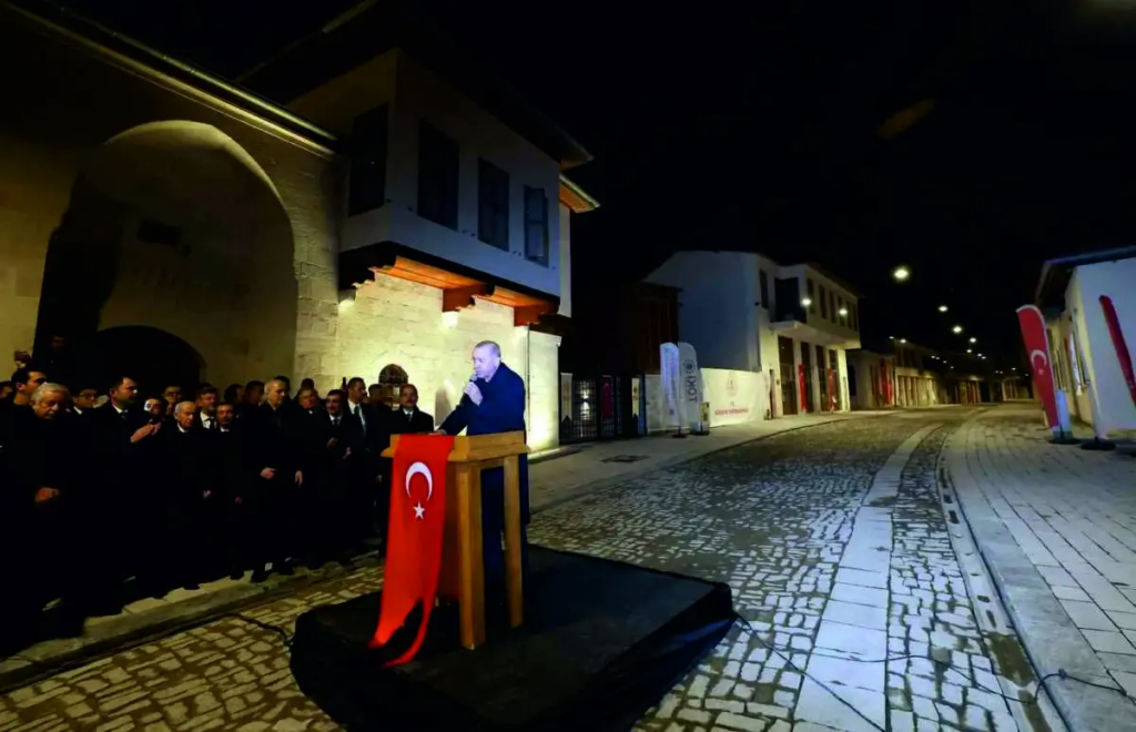 455 bininci afet konutu teslim töreninde 6 Şubat 2024 depreminde büyük hasar gören ve tarihi dokusu korunarak yenilenen Kurtuluş Caddesi de yeniden aydınlatıldı.