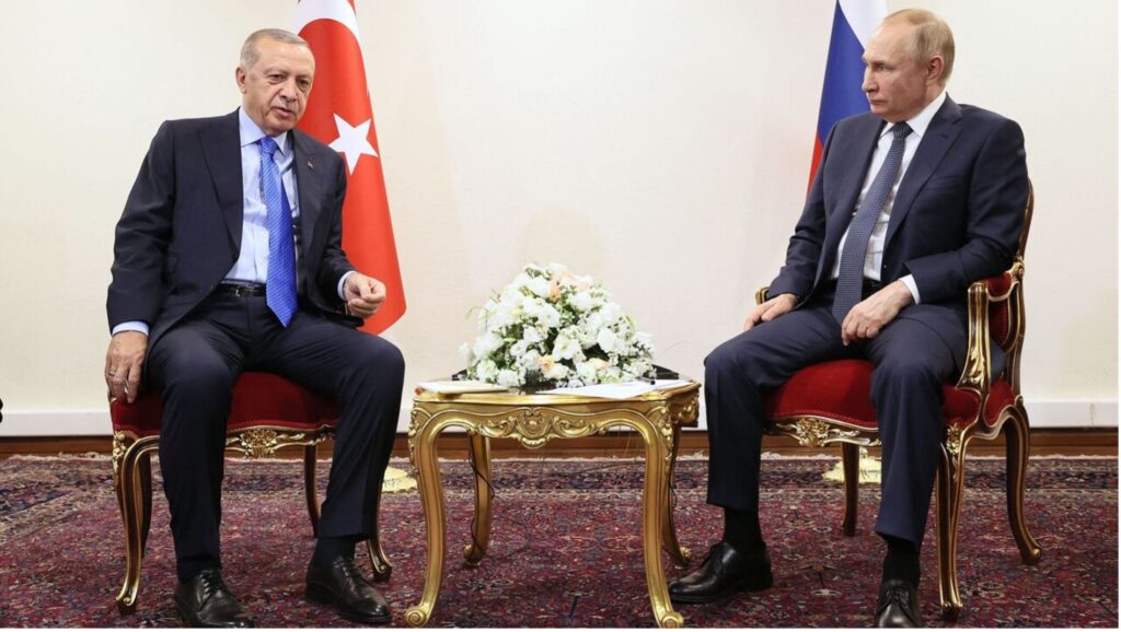 “Görüşmede Türkiye ile Rusya ikili ilişkileri, bölgesel ve küresel konular ele alındı. Cumhurbaşkanımız Erdoğan görüşmede, Türkiye ile Rusya arasında ticaret hacminin genişletilmesi başta olmak üzere birçok alanda iş birliğini artırmayı amaçladıklarını ifade etti. Cumhurbaşkanımız Erdoğan, Türkiye’nin bölgedeki gerilimleri sonlandırmak için gayretlerini sürdürdüğünü, barış süreçlerine katkı vermeye devam edileceğini belirtti.”