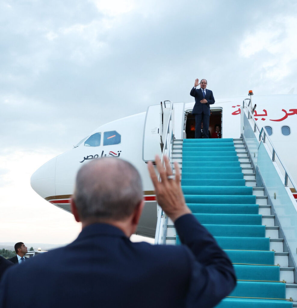 Mısır Cumhurbaşkanı Sisi, Esenboğa Havalimanı’nda Cumhurbaşkanı Erdoğan tarafından karşılandı.