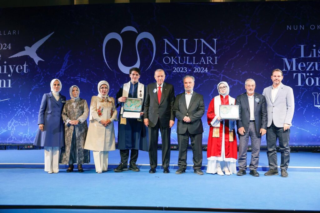 İstanbul NUN Okulları’nda gerçekleşen mezuniyet töreninde Cumhurbaşkanı Erdoğan uzun bir sürenin ardından Eski Hazine ve Maliye Bakanı Berat Albayrak’la aynı fotoğraf karesine girdi.
