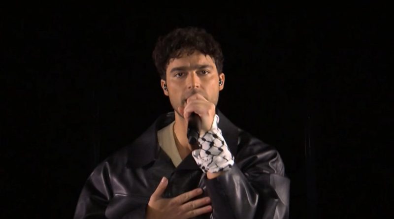 Australia's Fred Leone shows to support for Palestine during Eurovision  2024 performance