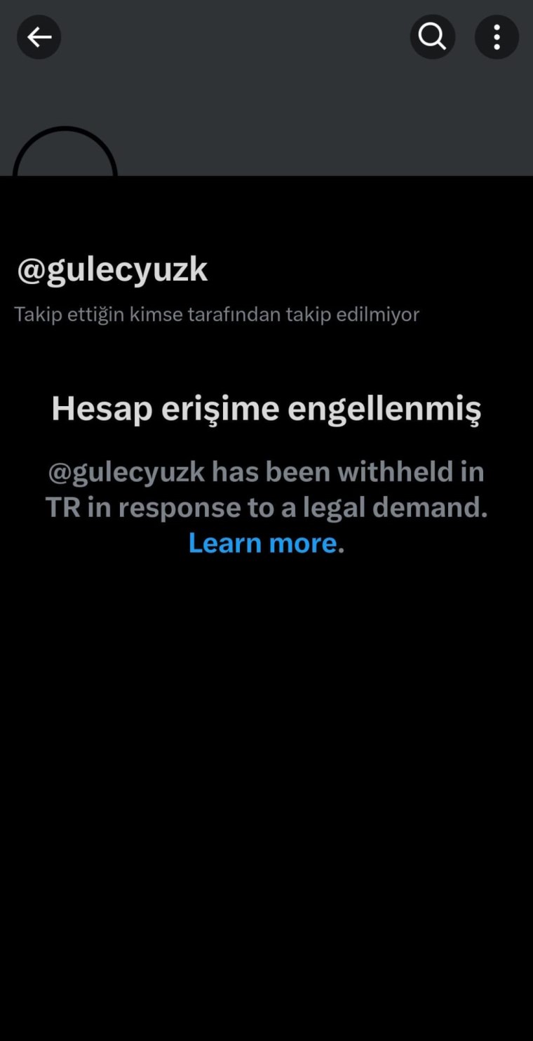 Güleçyüz’ün X hesabına Türkiye’den erişim engeli de getirildi.