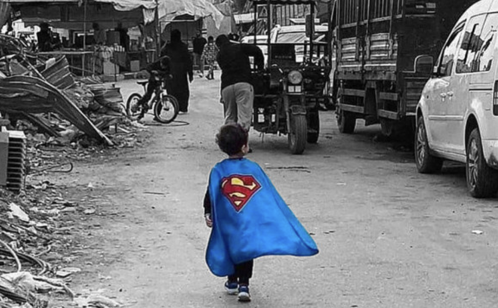 Muhtaç bırakıldıkları bir dilim ekmek, bir yudum su için onursuz bir şekilde sıraya dizilip taranan Gazze halkının gerçekten tek çaresi Superman.