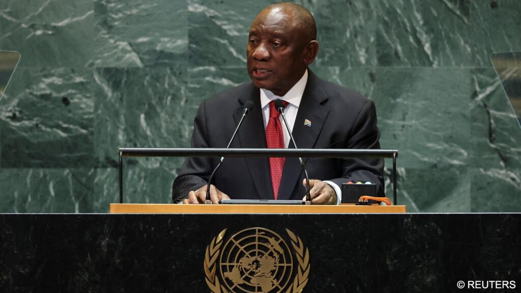 Güney Afrika Devlet Başkanı Cyril Ramaphosa’dan BM Genel Kurulu’nda konuştu: Biz Güney Afrikalılar apartheidin ne olduğunu biliyoruz. Apartheid altında yaşadık. Apartheid altında acı çektik ve öldük. Başkalarına apartheid uygulanırken sessiz kalmayacağız ve seyirci kalmayacağız.”