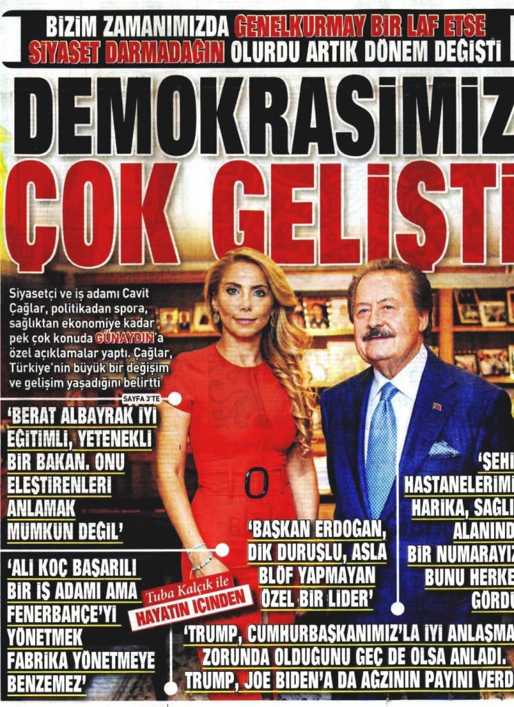 Günaydın’daki bu siyasi röportajları yapan Tuba Kalçık, her konuştuğu ünlüden iktidara ve Erdoğan’a destek manşetleri çıkarmayı başarıyor. Daha önce Ajda Pekkan, İbrahim Tatlıses, Serdar Ortaç, Bülent Ortaçgil, Selda Bağcan’dan böyle açıklamalar almayı başarmış, gazetesi de bunları manşetten vermişti.