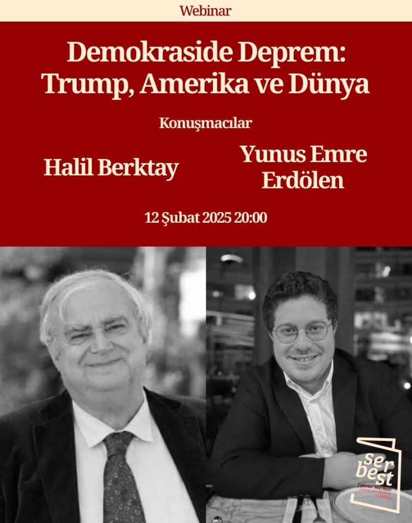 Serbestiyet Tartışmaları'nda bu ay… Prof. Dr. Halil Berktay ve Hukukçu Yunus Emre Erdölen katılımcılarla tartışıyor: Demokraside Deprem: Trump, Amerika ve Dünya