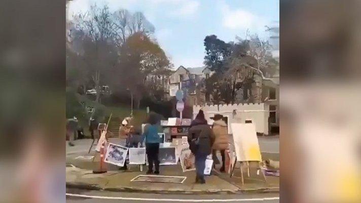 Bir grup öğrenci sanatla protestolara destek vermek için, üniversite öğrencilerinden ve dışarıdan insanlardan böyle modern sanat çalışmaları toplayıp sergiliyorlarmış.