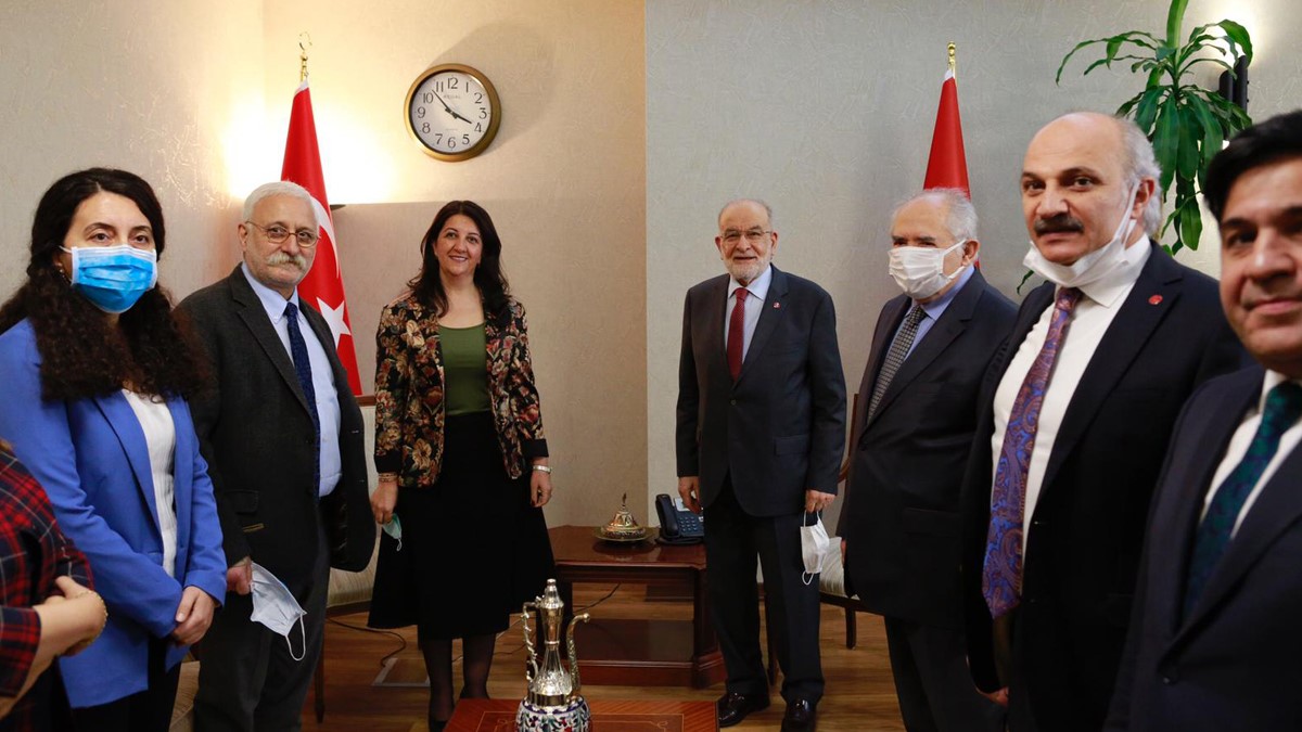 HDP Eş Genel Başkanı Pervin Buldan ile beraberindeki heyet, Saadet Partisi Genel Başkanı Temel Karamollaoğlu’nu ziyaret etti.