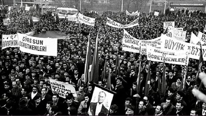 10 Aralık 1969’da Fakir Baykurt başkanlığında toplanan Türkiye Öğretmenler Sendikası (TÖS) 15 Aralık Pazartesi sabahından 18 Aralık Perşembe akşamına kadar dört günlük “ihtar boykotu” kararı alıyor. Boykot hakları slogan olmuş pankartlarında: “Grevsiz görev olmaz”.