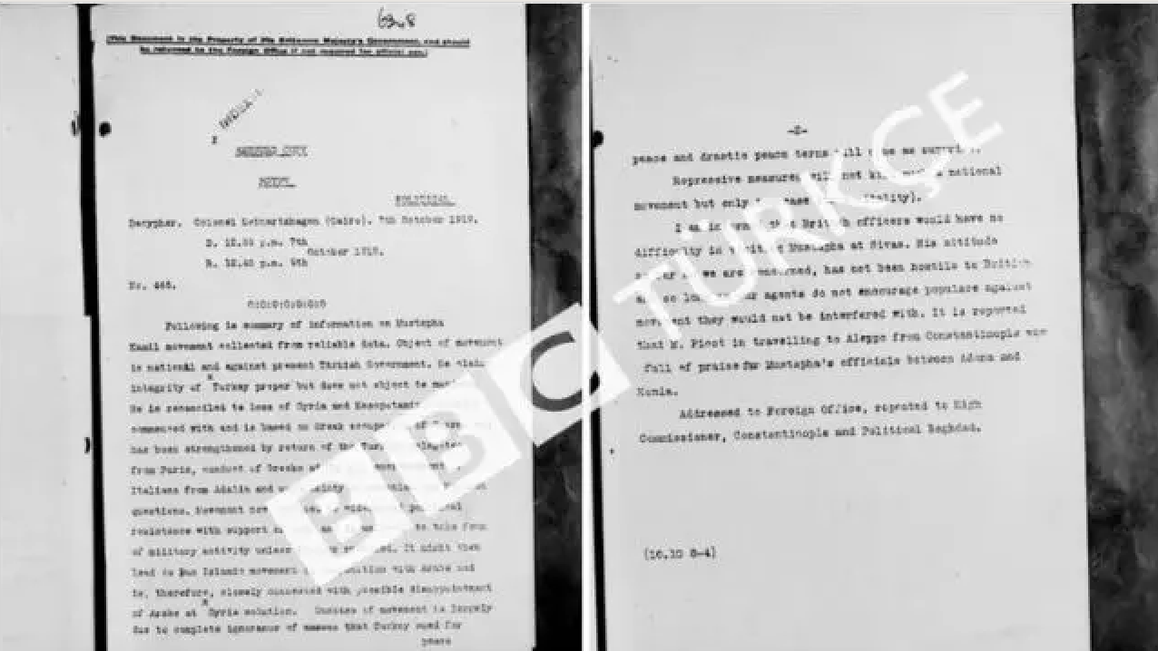 BBC Türkçe’nin ulaştığı belgeler, Ekim-Aralık 1919 arasındaki üç aylık dönemi kapsıyor. İngiliz yetkililerin Londra’daki makamlara ilettiği raporlarda, Mustafa Kemal ve Anadolu’da henüz yeni yeni örgütlemeye başladığı hareketle ilgili değerlendirmeler var.