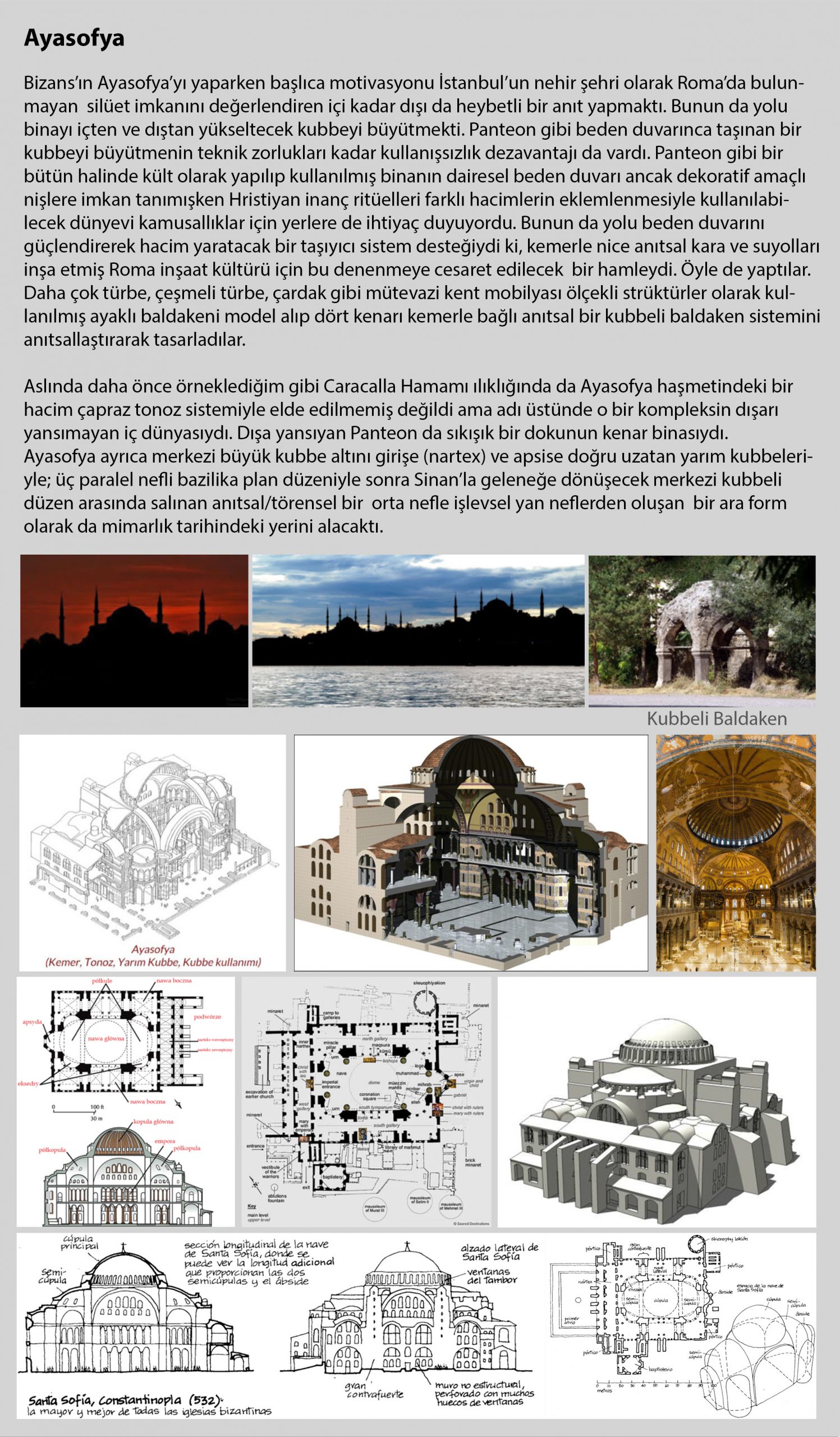 Bu ne hazımsızlıktır ki fethinden yarım bin yıl sonra İstanbul hala hep yeniden fethedilme ihtiyacı doğurmakta; olan da Ayasofya ile onun önemini anlayıp yorumlayan mimar olarak Sinan’a olmakta; günümüzün o zaman hesapta olmayan ideolojik ve siyasi yükleriyle yorulmaktadırlar. Bunu kestirmeden dile getiremeyip ekranları Atatürk’ün Fatih’in 20.yüzyıldaki yerli/milli karşılığı olduğunun anlatılarak işgal edilmesi de hasmı kadar kulak tırmalayıcı oluyor benim gibiler için. Bu çaresizliklerden uzaklaşmanın sağlam yolu olarak Ayasofya’nın inşai maddeliğini konu etmek üzere bir bina olarak Ayasofya’nın Roma inşaat geleneği içindeki yerine değinip Sinan’la bitireceğim…