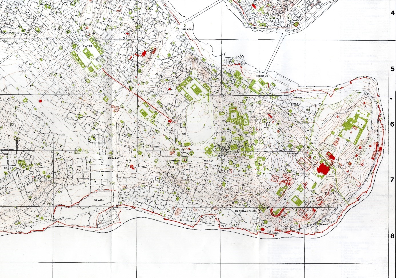 Üstteki İstanbul temsilinde görüldüğü gibi Bizans Konstantin planının omurgası Mese odaklı gelişip Ayasofya ile sonlanmışken Osmanlı istikrarlı şekilde, o eksenden Theodosius forumun(çemberlitaş)’dan sapıp su kemerine ve Haliç’e paralel seyreden hattı eksen alarak gelişmiş ve başta en hacimlileri, Fatih ve Süleymaniye; roma forumları devamı selatin külliyelerini o eksene göre konumlandırarak zamanla efsane Haliç siluetini çizdi.