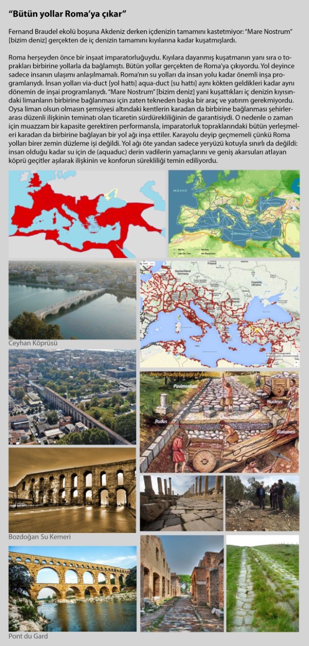 Fethettiği Akdeniz havzasını kırdan şehire, altyapıdan binaya standart inşaatlarla donatarak hegemonya kurup pekiştirmiş Roma’nın bir inşaat imparatorluğu olarak profilini çizip ikinci başkenti İstanbul’un belirleyici anıtı Ayasofya’nın o inşai gelenek içindeki yerini anladıktan sonra o doruğun sürekliliğine damga vurmuş Sinan’ın payını anlatacağım.