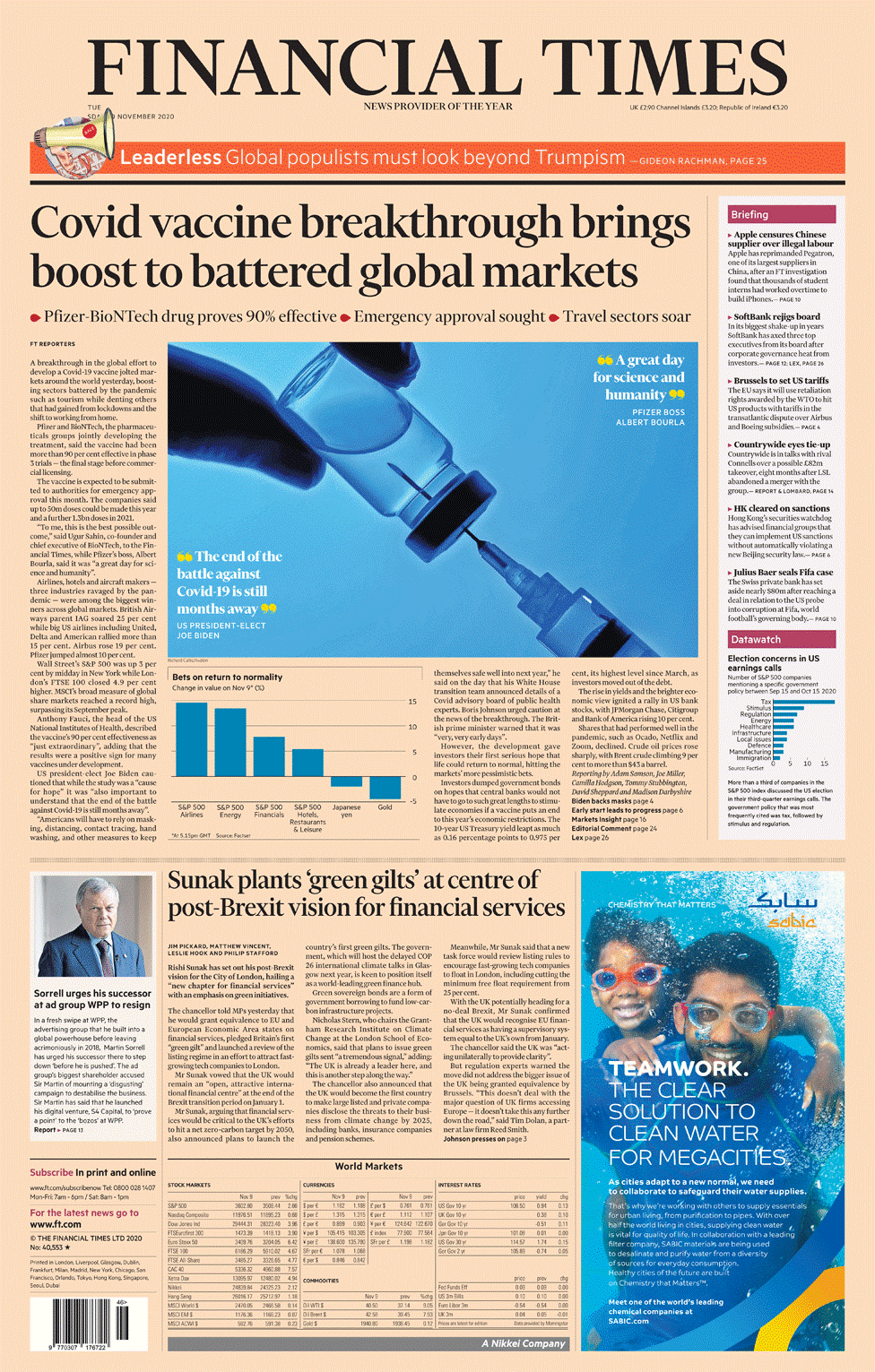 Uğur Şahin ve Özlem Türeci’nin şirketlerinin koronavirüs aşısı müjdesi dün de İngiliz gazetelerinin manşetlerindeydi.