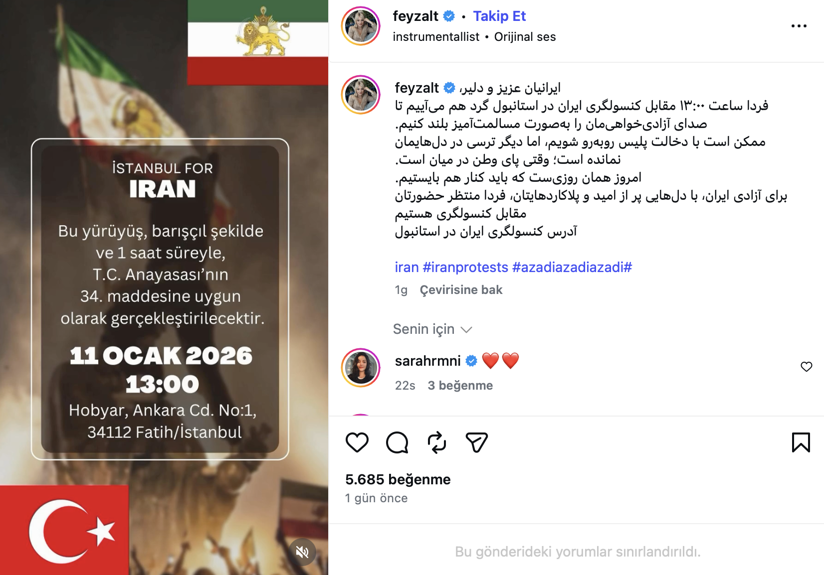 Avukat Feyza Altun, dün Farsça konuştuğu bir video yayınlayarak, İstanbul’daki İranlıları, İran konsolosluğu önünde yapılacak eyleme davet etti.