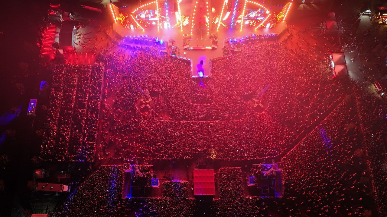 Sanatçı, “Burada olduğum için çok mutluyum. Çok teşekkürler. İyi vakit geçiriyor muyuz? İyi zaman geçirmeye hazır mısınız? Benimle beraber şarkı söyleyecek misiniz?” ifadelerini kullandı.