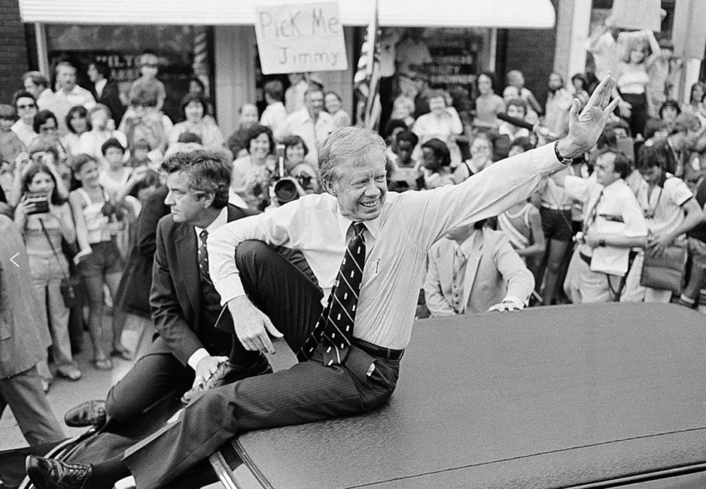 ABD’nin güney eyaletlerinden Georgia’da dünyaya gelen Jimmy Carter, üniversite eğitiminin ardından büyük bir hevesle donanmaya yazılmış, uzun yıllar askerlik yaptıktan sonra babasının borçlarını toparlamak için aile şirketinin başına geçerek yer fıstık üretimiyle uğraşmış, bir nevi çiftçilik yapmıştı. Özellikle Baptist Kilisesi’ndeki aktif cemaat içi tartışmalarda boy gösteren Carter, başarısız birkaç yerel siyaset denemesinin ardından içine kapanmış ve din üzerine düşünerek “Hıristiyanlığa olan inancımı tazeledim” gibi bir çıkış ile 1970 Valilik seçimlerinde boy göstermişti. Yer yer beyaz üstünlükçülüğe göz kırpan orta yolcu bir Demokrat Partili olarak girdiği valilik seçimlerini kazanan Carter, daha sonrasında siyasi rotasını ılımlaştırmış, insan hakları gibi konularda daha ilerici pozisyonlar almıştı.